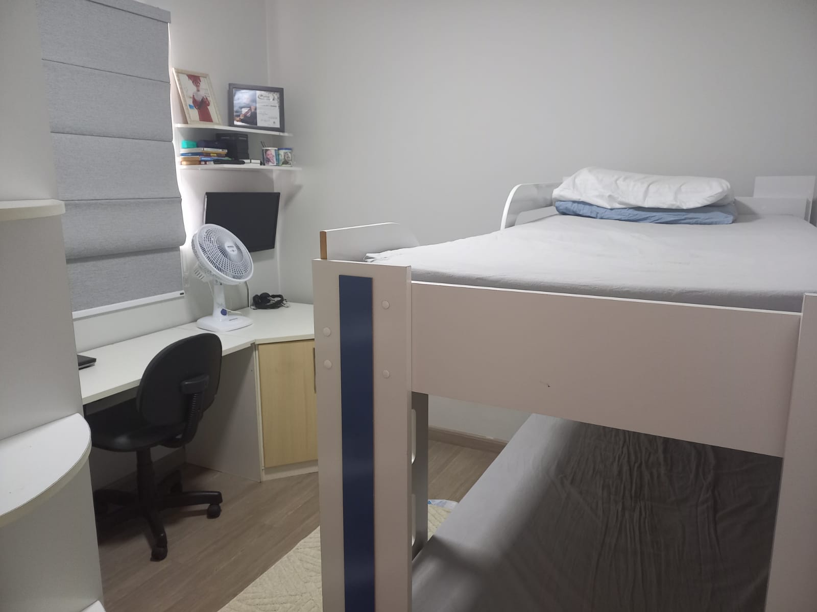Piso superior: 03 dormitórios com armários planejados, sendo uma suíte e banheiro social com box de vidro e gabinete.